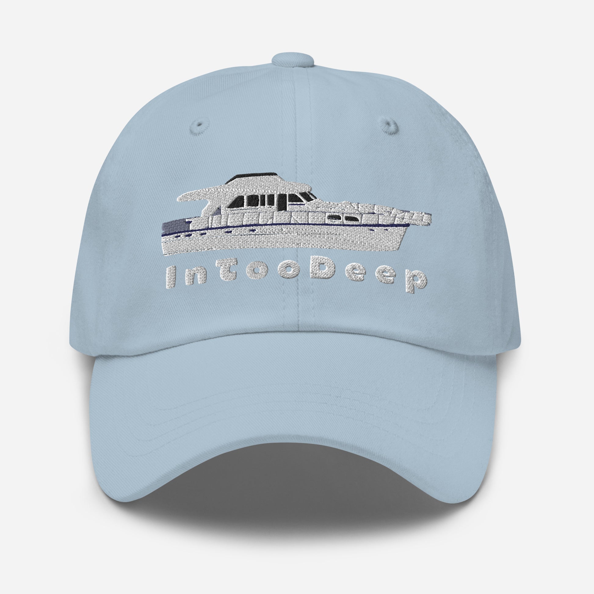 Dad hats aren't just for dads. This one's got my 1968 Hatteras 50' "Bella Rose" embroidered on the front. It has a low profile with an adjustable strap and curved visor.